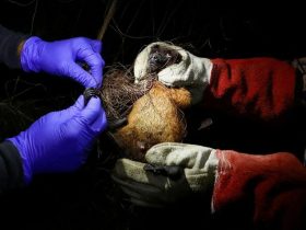 أحد المشاركين في “قافلة المرونة” ، يحمل العلم الفلسطيني. تتألف قافلة Sumud من متطوعين في المجتمع المدني الذين يغادرون من تونس إلى غزة من خلال ليبيا ومصر في محاولة لكسر حصار إسرائيل. حسن mrad/imageslive عبر Zuma Press Wire/DPA