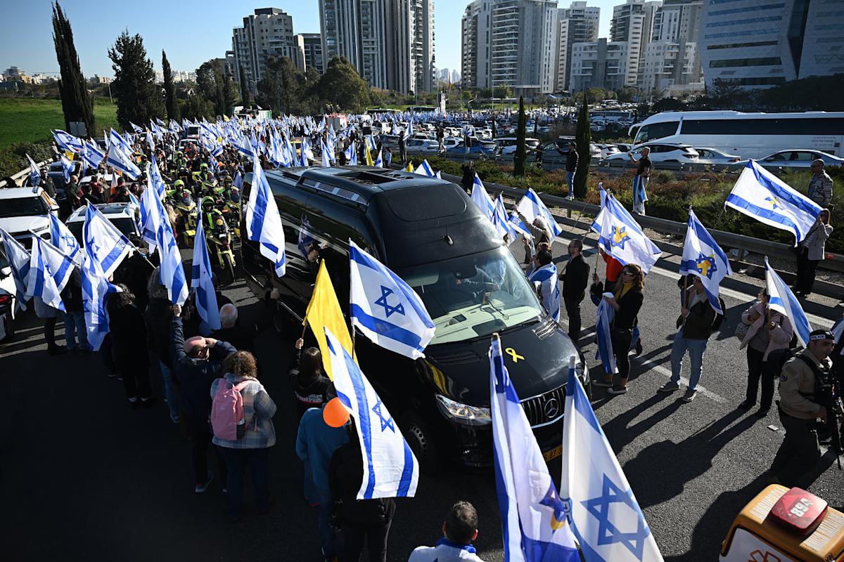 عندما حملت الشاحنات السوداء الصناديق والأقارب الحزينة عبر مدينة ريشون ليزيون الوسطى ، وقفت حشود ضخمة من الإسرائيليين في الشوارع الجانبية والطرق الرئيسية والبكاء.