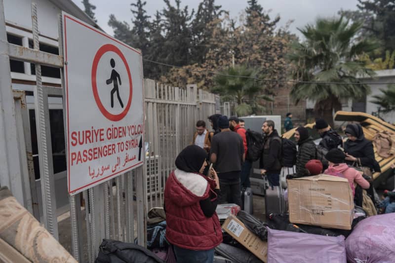 سوريون ينتظرون العبور إلى سوريا من تركيا عند بوابة سيلفجوزو الحدودية، بالقرب من هاتاي في جنوب تركيا. أحمد ديب/ د ب أ