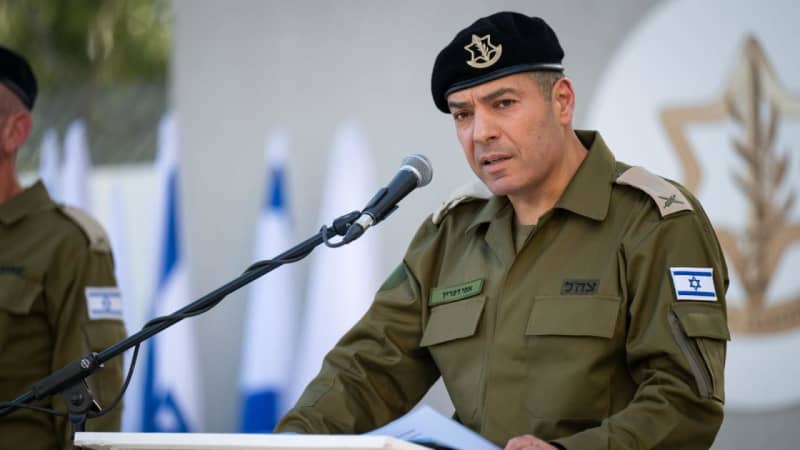 المتحدث باسم الجيش الإسرائيلي العميد جنرال. إيفي ديفرين في حفل تبديل في تل أبيب، إسرائيل، 27 مارس، 2025. (IDF SPOKESPERSON’S UNIT)