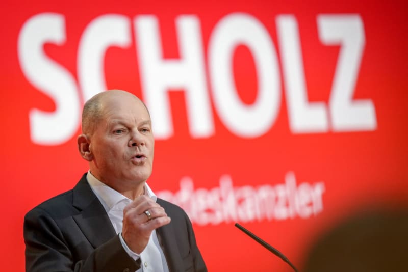 المستشار الألماني أولاف شولتس (SPD) يتحدث في ما يسمى بـ “مؤتمر النصر في الانتخابات” الذي عقده الحزب الاشتراكي الديمقراطي. ويمثل المؤتمر بداية حملة الحزب الاشتراكي الديمقراطي للانتخابات الفيدرالية المبكرة في عام 2025. كاي نيتفيلد/ وكالة الأنباء الألمانية