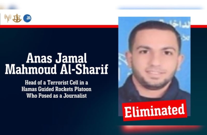 أكد جيش الدفاع الإسرائيلي أن قتل أناس الشريف ، وهو إرهابي حماس الذي عمل أيضًا كمراسل لجزيرة الجزيرة داخل قطاع غزة.