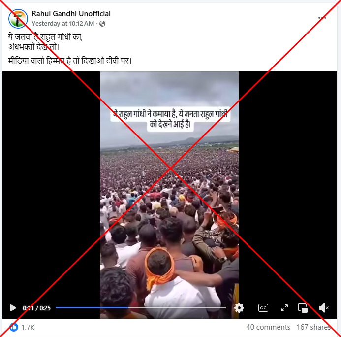 يشارك المنشور أيضًا مقطعًا مدته 25 ثانية يوضح حشدًا كبيرًا تم تجميعه في أرض مفتوحة مع تراكب نص يقرأ ، “لقد اكتسب راهول غاندي هذا. لقد جاء الجمهور لرؤية راهول غاندي”.