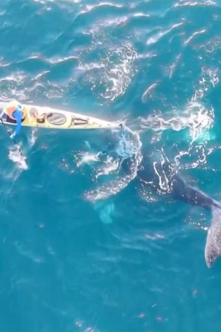 مثل كثير من الأطفال، تغلبت على صغار الحوت الأحدب مؤخرًا الرغبة الملحة في اللعب. تُظهر لقطات طائرة بدون طيار التقطها شون آرثرسون مؤخرًا في المياه المحيطة بنيو ساوث ويلز بأستراليا، العجل الفضولي وهو يسبح على بعد بضعة أقدام من مجموعة من زوارق الكاياك.