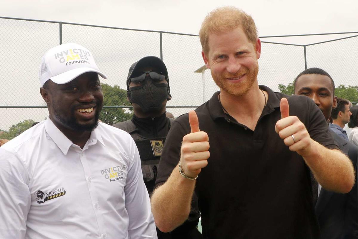 الأمير هاري مع ميغان ماركل ، وغادر ، ديفيد وايزمان ، مدير التنمية الدولي في مؤسسة ألعاب Invictus في نيجيريا ، مايو 2024