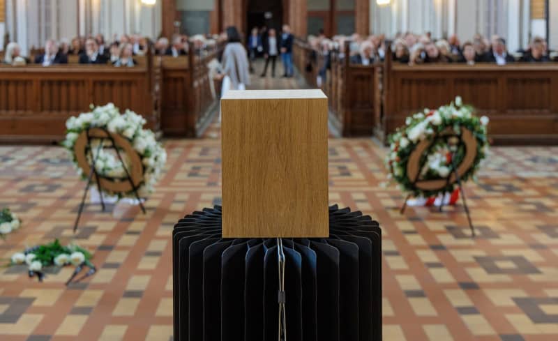 يحمل واعظ الكاتدرائية فولكر ميسوك الخدمة الجنائزية للفنان الراحل غوينثر أوكر في كاتدرائية شويرين. ولد في 13 مارس 1930 في ويندورف ونشأ في شبه جزيرة وسترو في مكلنبورغ ، عاش غنتير أوكر وعمل في دوسيلدورف منذ منتصف الخمسينيات. Markus Scholz/DPA