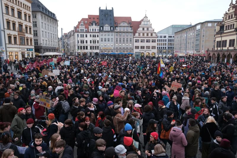 يحتفظ المتظاهرون براية تقرأ “لا يوجد تضامن من اليمين” باللغة الألمانية ، خلال مظاهرة في ويلهلم-لوشنر-لاتشنر في لايبزيغ ضد سياسة هجرة أكثر صرامة في ألمانيا. انتقل المتظاهرون إلى الشوارع في جميع أنحاء ألمانيا ضد الجهود التي بذلها الاتحاد الديمقراطي المسيحي في الوسط (CDU) للانتقال من خلال الإصلاحات إلى قوانين الهجرة في البرلمان بدعم من البديل اليميني المتطرف لألمانيا (AFD). سيباستيان لاو/DPA