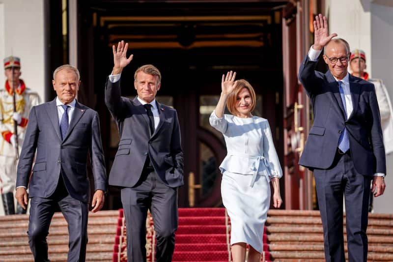 زار المستشار الألماني فريدريش ميرز والرئيس الفرنسي إيمانويل ماكرون ورئيس الوزراء البولندي دونالد توسك مولدوفا يوم الأربعاء في عرض لدعم الحكومة المؤيدة لأوروبا في البلاد قبل الانتخابات البرلمانية في سبتمبر.