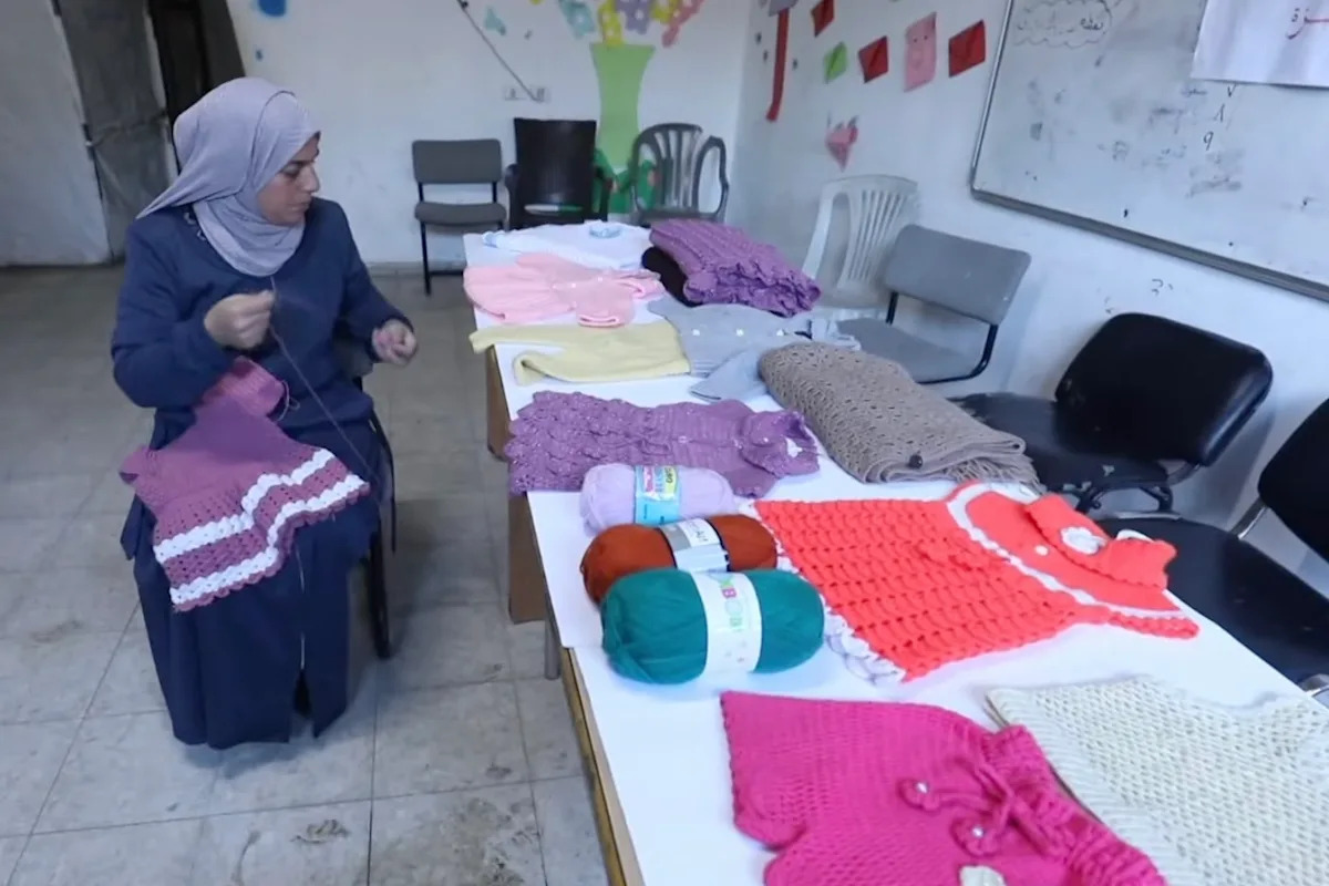 تعتمد أم محمد الجرجاوي على الحياكة لإعالة أسرتها [Screen grab/Al Jazeera]
