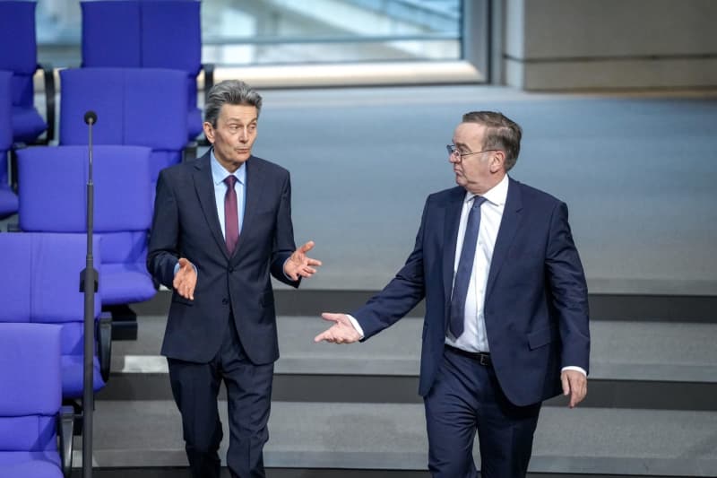 يشارك روبرت هابيك (L) ، وزير الشؤون الاقتصادية الألمانية وحماية المناخ ، و Cem Ozdemir ، الوزير الألماني للطعام والزراعة والوزير الألماني للتعليم والأبحاث ، في الجلسة العامة لـ Bundestag في مبنى الرايخستاغ. Kay Nietfeld/DPA