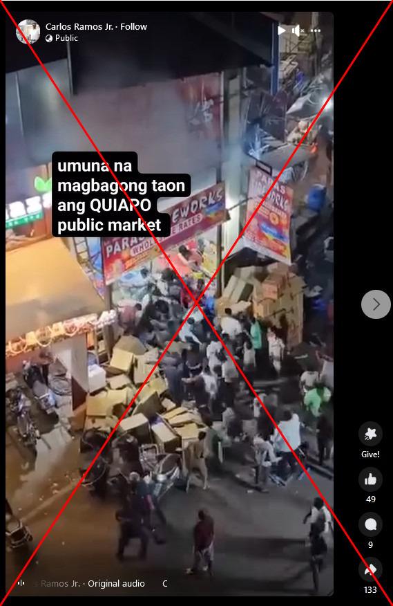 “لقد وصل يوم رأس السنة الجديدة في وقت مبكر إلى سوق كويابو العام،” يقرأ النص المكتوب باللغة التاغالوغية، في إشارة إلى سوق في الحي القديم بالعاصمة الفلبينية مانيلا (رابط مؤرشف).