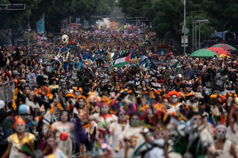 وشاهد نحو 1.5 مليون شخص عربات ملونة وأشخاص يرتدون الأزياء وهم يسيرون عبر مدينة مكسيكو سيتي خلال عرض كبير بمناسبة يوم الموتى يوم السبت، وفقا لإدارة المدينة.