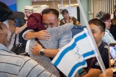 يصل المهاجرون الجدد من الولايات المتحدة الأمريكية وكندا إلى “رحلة علياه” الخاصة “2016” نيابة عن منظمة Nefesh B'Nefesh ، في مطار Ben Gurion في وسط إسرائيل في 17 أغسطس 2016 ، (الائتمان: Miriam Alster/Flash90)