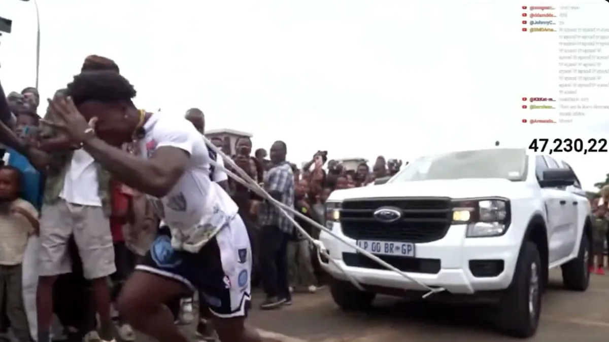 التحدي، الذي يشار إليه عادة من قبل المشجعين على أنه اختبار القوة الأفريقية، يتضمن تثبيت السرعة في الحزام وسحب السيارة للأمام باستخدام القوة المطلقة. وسط حشد من الجماهير المبتهجة، اتجه مقدم البث إلى المهمة بجهد واضح قبل أن يصل بنجاح إلى نقطة النهاية. أثار الانتهاء من المشروع احتفالات صاخبة من المتفرجين، مما عزز المشهد الذي أصبح سمة مميزة لجولته.