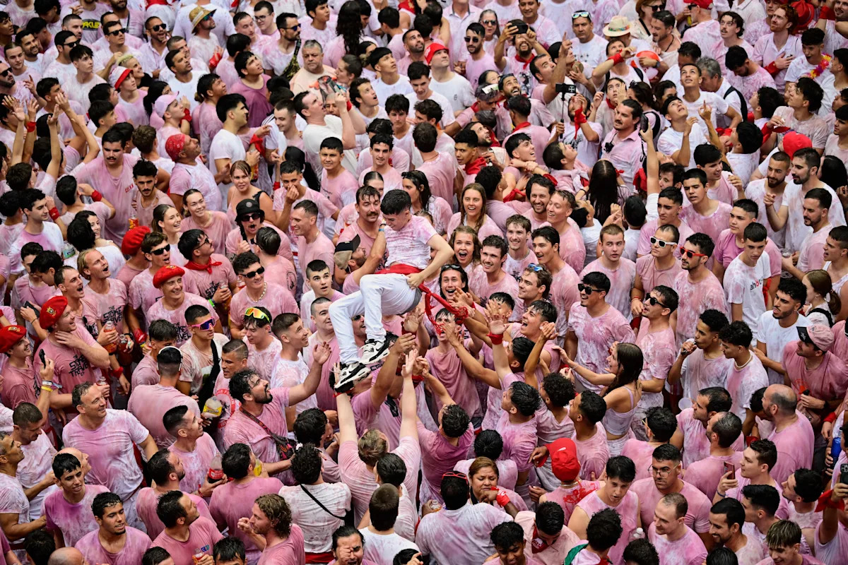 بامبلونا ، إسبانيا (AP)-قام عشرات الآلاف من المحتفلين بتعبئة الميدان الرئيسي في بامبلونا ، شمال إسبانيا ، يوم الأحد للاحتفال بانفجار الألعاب النارية “Chupinazo” التقليدي الذي يمثل بداية مهرجان سان فيرمين في سباق الثور.