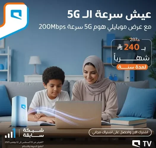 عروض موبايلي السعودية على باقة هوم 5G بـ 240 ريال شهريًا فقط
