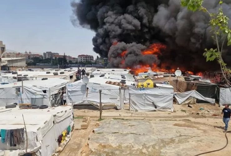 بالفيديو/ حريق كبير داخل مخيم للنازحين السوريين في زحلة