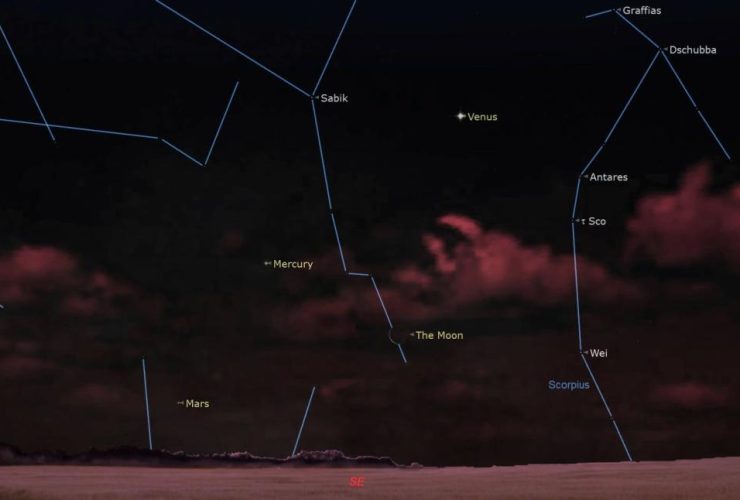 شاهد لقاء القمر مع عطارد والزهرة والمريخ في سماء الصباح الباكر يوم 9 يناير