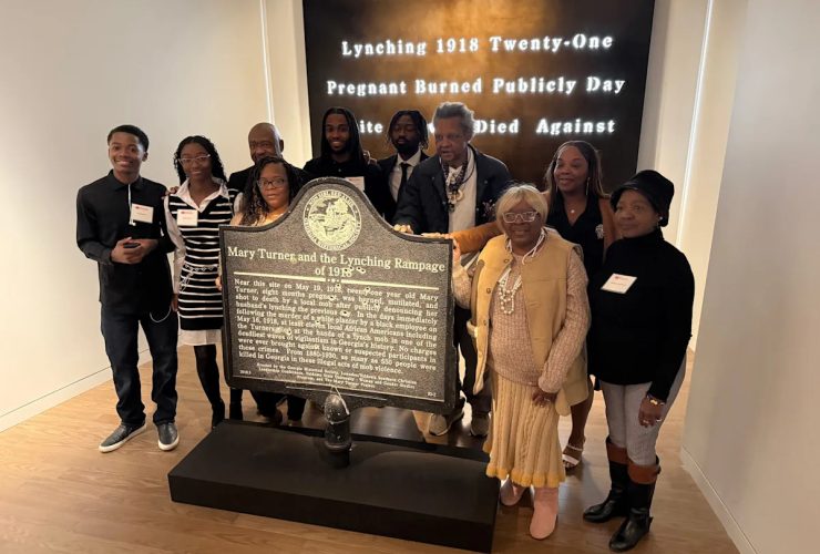 يتم عرض علامة مثقوبة بالرصاص تخليدًا لذكرى الإعدام خارج نطاق القانون عام 1918 في أتلانتا