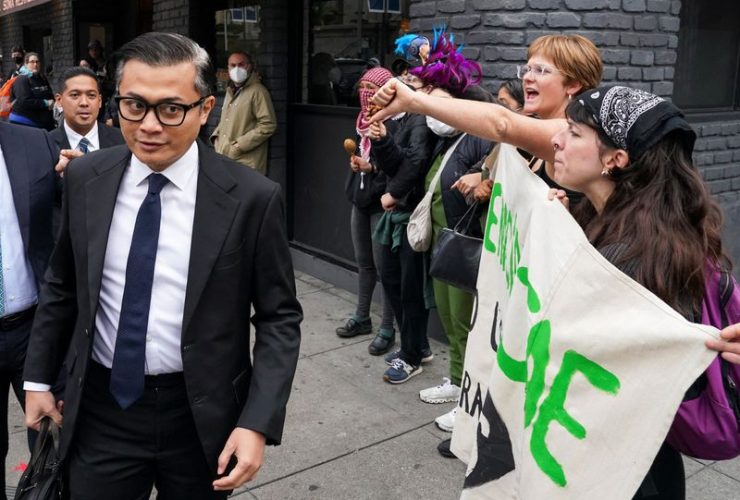 متظاهرو منظمة التعاون الاقتصادي لآسيا والمحيط الهادئ (APEC) يخرجون في وقت مبكر من يوم اجتماع شي جين بينغ وجو بايدن