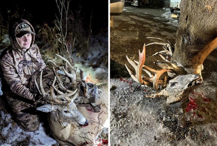 صياد ساسكاتشوان يأخذ باكًا “اثنين مقابل واحد” برأس ميت عملاق ملتصق على رفه