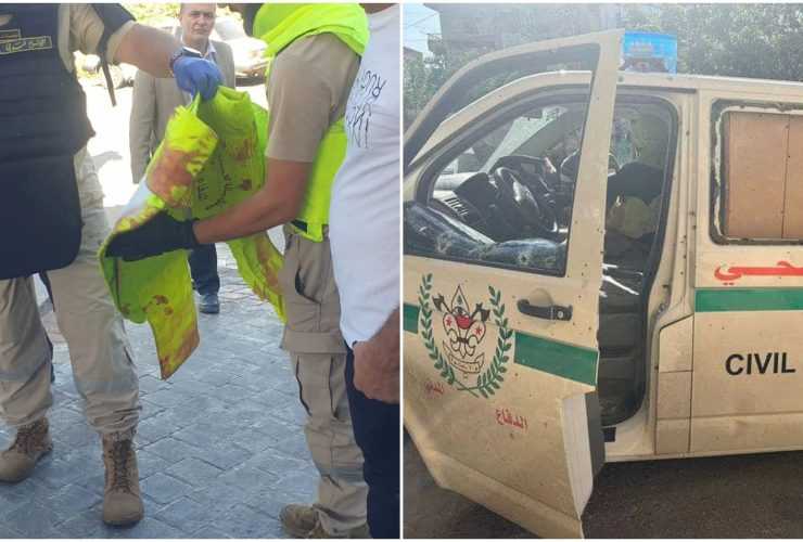 بالصور والفيديو/ سيارة المسعفين التابعة لجمعية الرسالة للإسعاف الصحي التي استهدفها الاحتلال الإسرائيلي في طيرحرفا