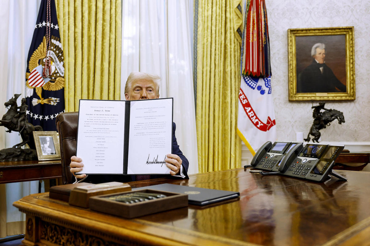 لم ينته بعد أسبوع الرئيس دونالد ترامب في منصبه ، لكنه استوفى خطته “لإغراق المنطقة” مع طوفان من الإجراءات التنفيذية المصممة لاكتساح فترة ولايته الثانية ويغسل عصر بايدن.