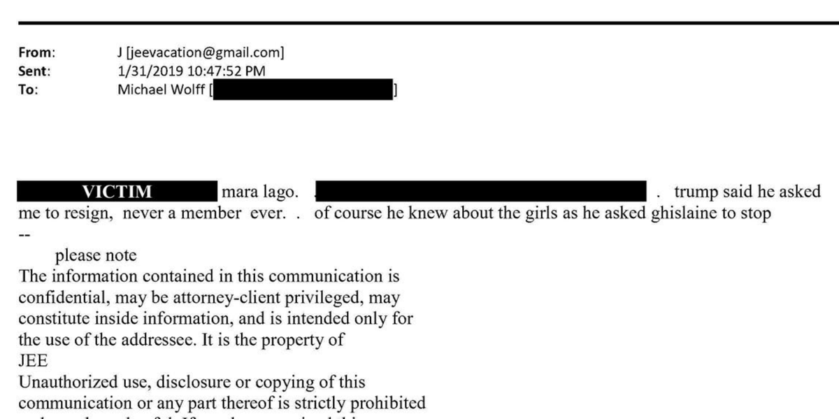تم تنقيح رسائل البريد الإلكتروني، التي حصلت عليها اللجنة عبر أمر استدعاء من ملكية إبستين، جزئيًا لحماية هويات الضحايا. يمكنك قراءتها أدناه: