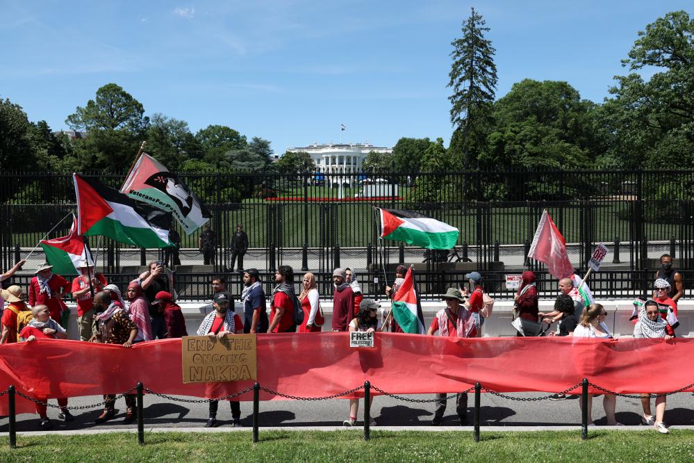 الآلاف يتجمعون في البيت الأبيض للمشاركة في مظاهرة مؤيدة للفلسطينيين