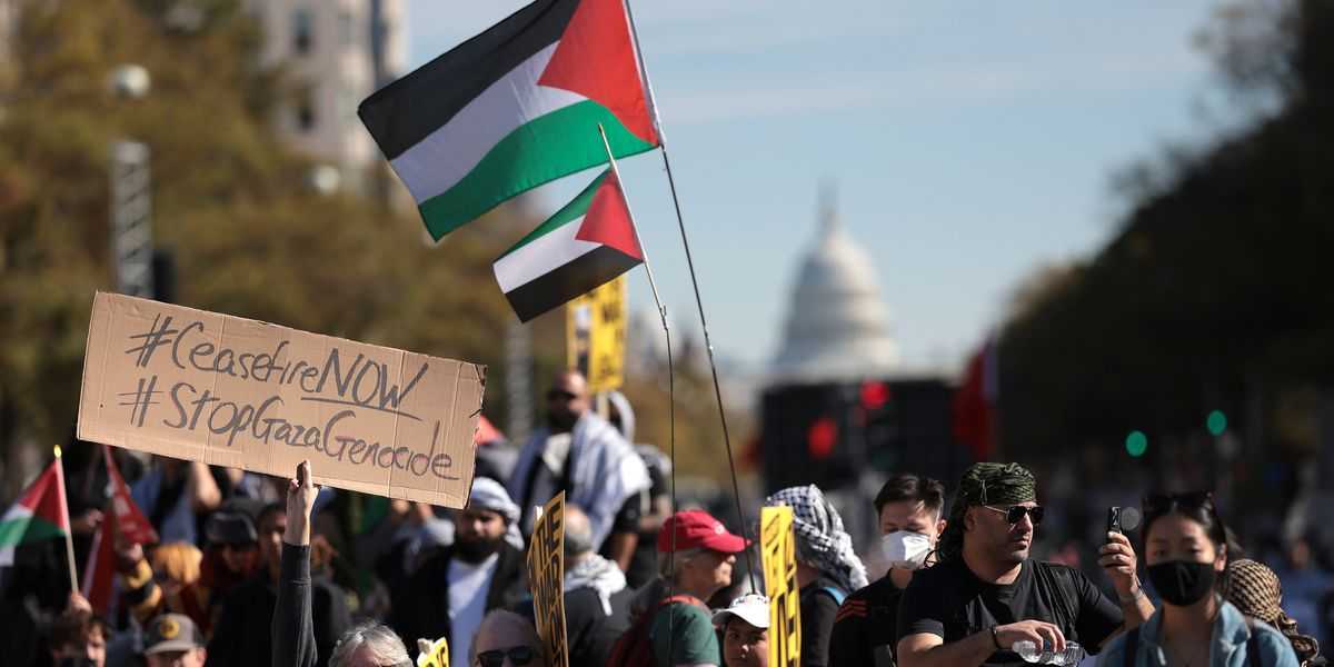 تجمع آلاف الأشخاص في واشنطن العاصمة يوم السبت للمطالبة بوقف إطلاق النار في قطاع غزة الصغير بعد ما يقرب من شهر من القصف الانتقامي المستمر من إسرائيل.