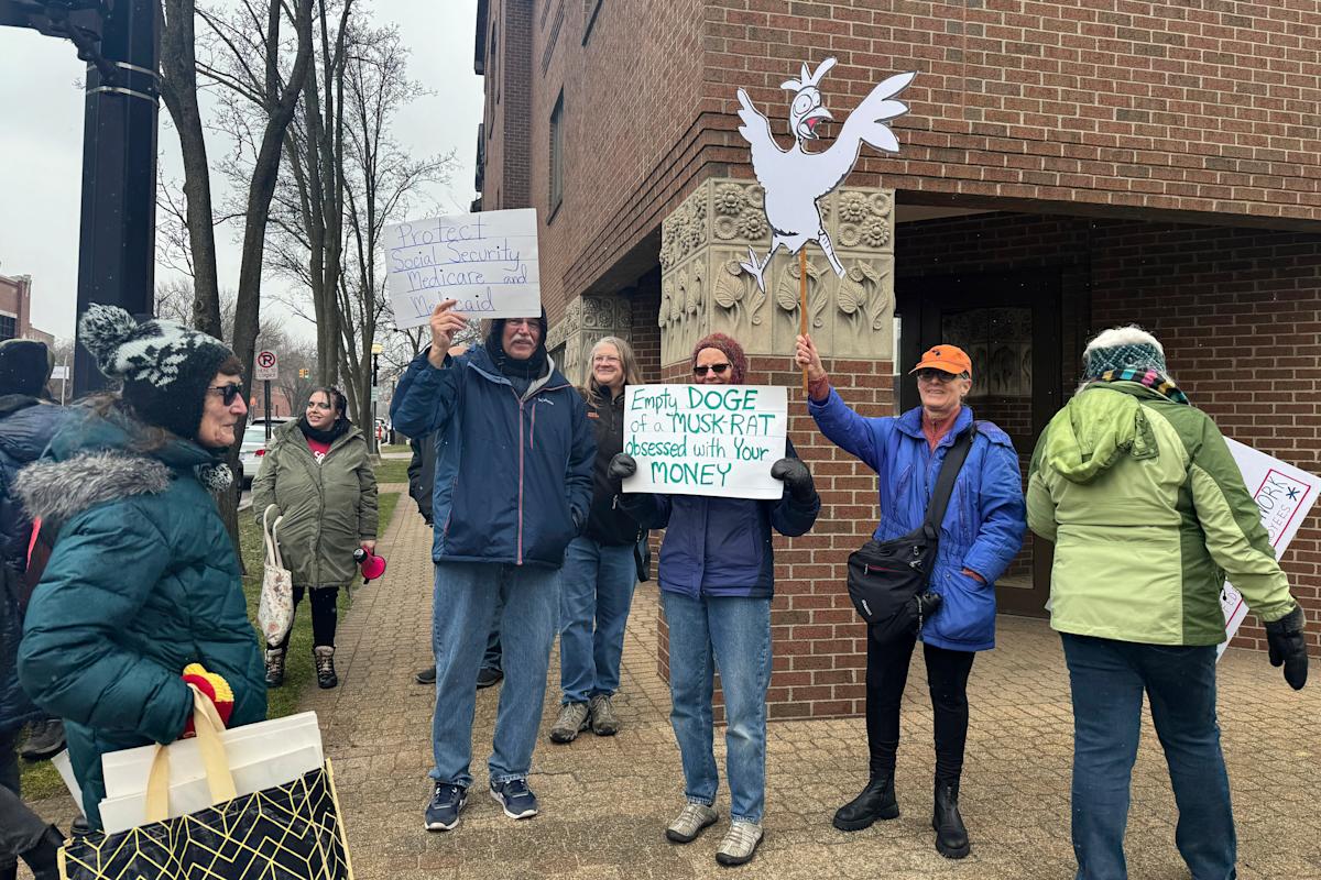 تجمع ما يقرب من 50 شخصًا خارج مكتب Huizenga كسيارات ، تتراوح من نصف الشركات إلى Pickups Ford ، و Honked أثناء قيادتهم. يوجد مكتبه في هولندا في مقاطعة أوتاوا ، وهي منطقة دينية عميقة تُعرف باسم معقل السياسة المحافظة. حصل ترامب على المنطقة في انتخابات عام 2024 بنسبة 59.5 ٪ من الأصوات.