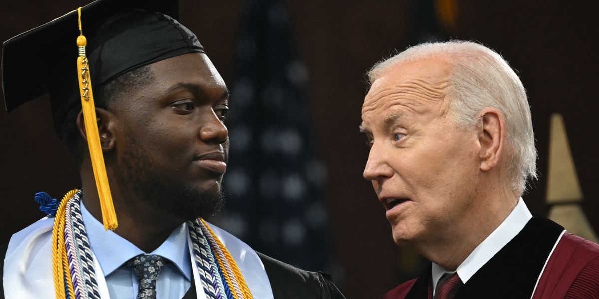 جلس بايدن خلف الطالب المتفوق خلال الحفل الذي أقيم في كلية السود التاريخية في أتلانتا، حيث تحدث فليتشر عن الصراع بين إسرائيل وحماس والدمار الذي أحدثه.