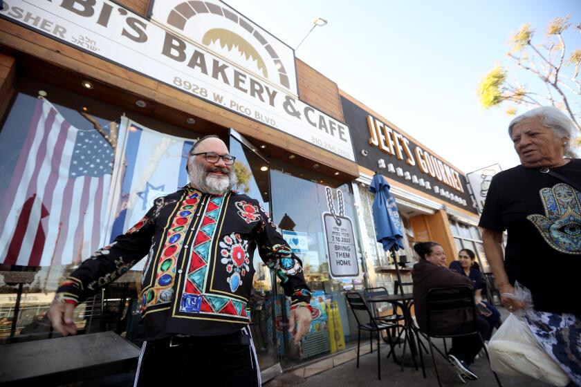 أحد المشاة يشق طريقه نحو مطعم Factor's Famous Deli في بيكو روبرتسون. (جينارو مولينا / لوس أنجلوس تايمز)