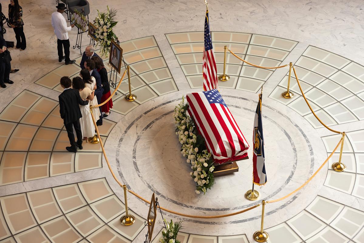 قام المشرعون بالولاية وأفراد الجمهور بزيارة ولاية يوتا كابيتول مساء الأحد لدفع احترامهم في نعش الحب المغطى بالعلم خلف الحبال في المبنى.