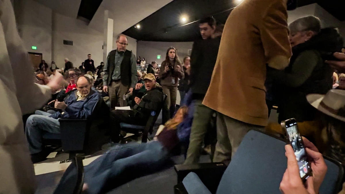 وقال ريغان إنه تم إخبار جميع الحاضرين في قاعة المدينة بأنهم سيتم إزالتهم إذا لم “يحترمون حقوق الآخرين”.