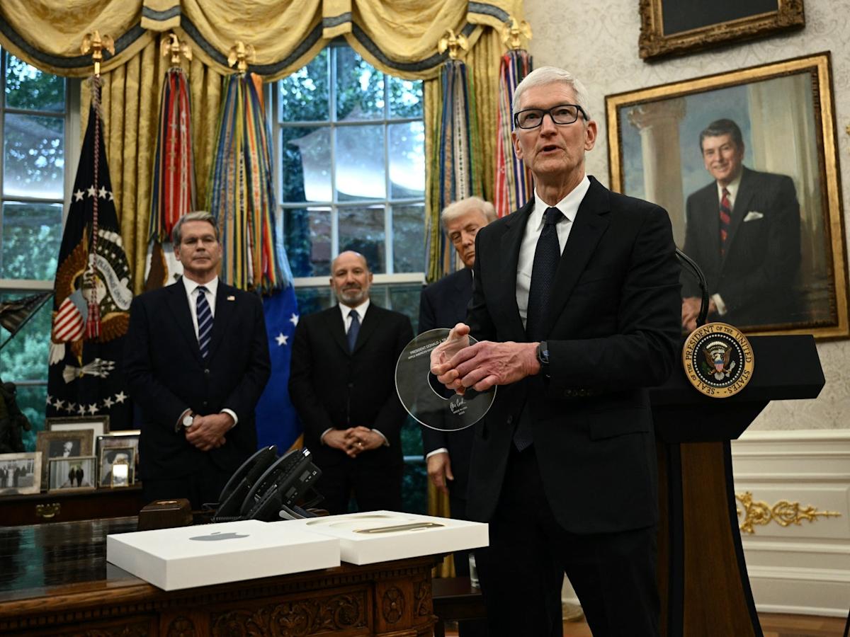 انضم تيم كوك إلى دونالد ترامب لإعلان احتفالي في المكتب البيضاوي.