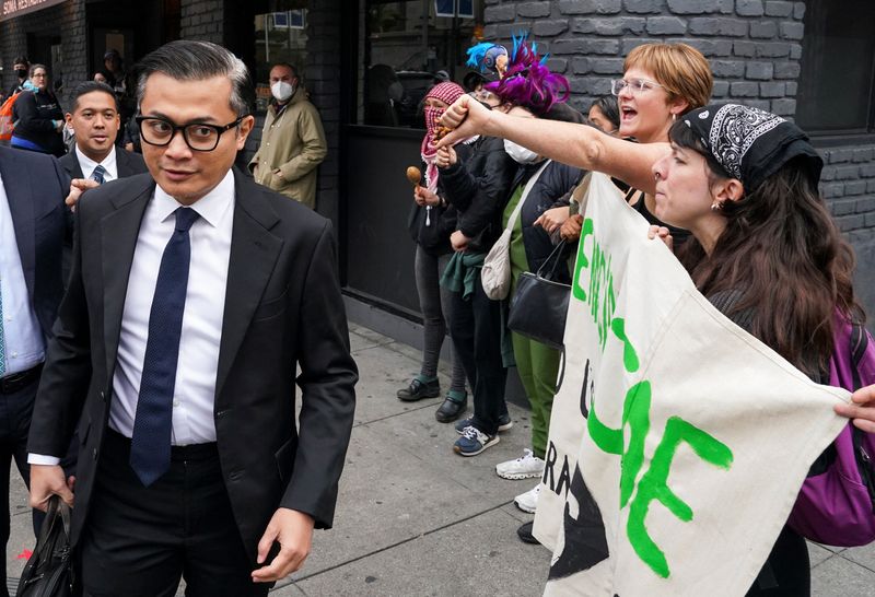 سان فرانسيسكو (رويترز) – خرج محتجون إلى شوارع سان فرانسيسكو في وقت مبكر من صباح يوم الأربعاء قبيل اجتماع بين الرئيس الأمريكي دونالد ترامب والرئيس الأمريكي دونالد ترامب. جو بايدن والرئيس الصيني شي جين بينغوعرقلة بعض المداخل لمؤتمر الابيك.