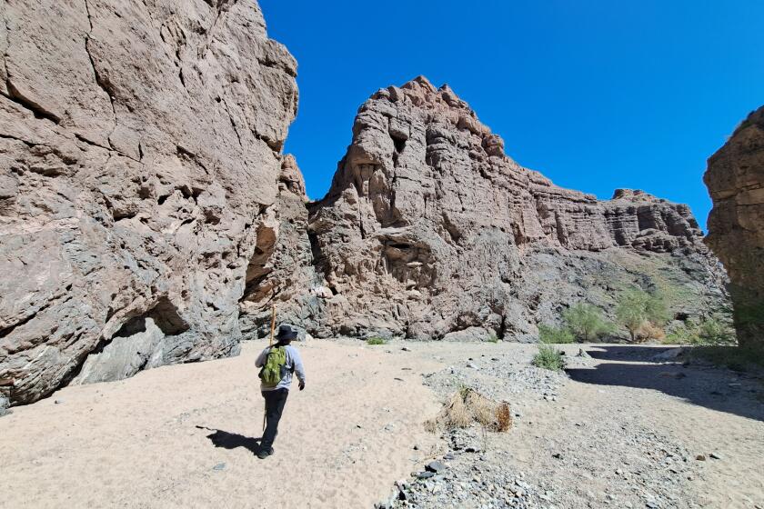 يقود توماس تورتيز جونيور مجموعة عبر مغسلة مليئة بالحصى في Painted Canyon، في المكان الذي عاش فيه أسلافه من قبيلة Cahuilla ذات يوم في القرية.