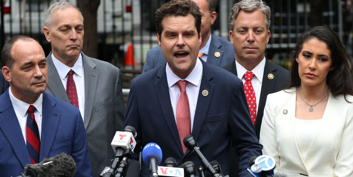 “هذه جريمة مختلقة!” ادعى النائب مات جايتز (جمهوري من فلوريدا) كذباً في الحدث الصحفي مع بويبرت. واتهم أحد الشهود في القضية، المحامي الشخصي السابق لترامب، مايكل كوهين، بالكذب. وأشار إلى القاضي، قاضي المحكمة العليا في نيويورك، خوان ميرشان، باسم “هذا القاضي الفاسد” واتهم أفراد عائلته بالفساد أيضًا.