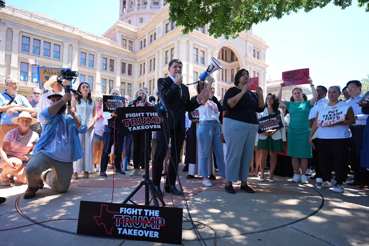يتحدث النائب عن ولاية تكساس الديمقراطية جيمس تالاريكو خلال تجمع تجمع للاحتجاج على إعادة تقسيم الدوائر في كابيتول في تكساس ، الخميس ، 24 يوليو 2025 ، في أوستن ، تكساس. / الائتمان: إريك جاي / AP