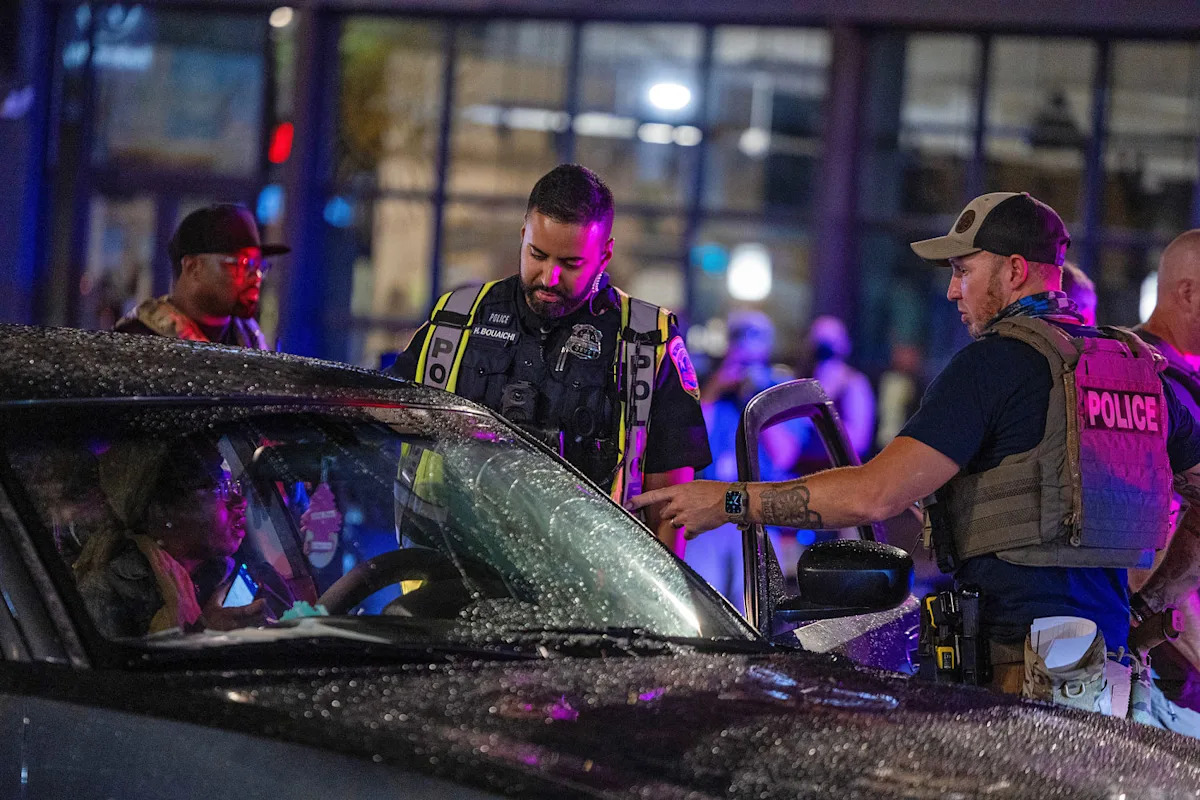 يسأل ضباط الشرطة سائقًا في نقطة تفتيش على جانب الطريق في 13 أغسطس في واشنطن. (ملف Tasos Katopodis / Getty Images)