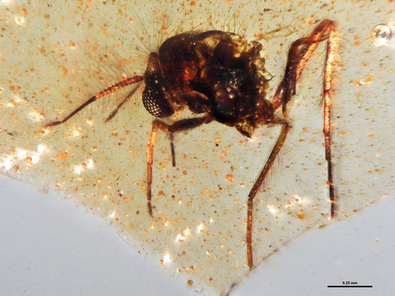 شملت الحشرات المكتشفة في العنبر Midges – من النوع الذي لا يعض ونوع لا – وكذلك المن ، الدبابير ، caddisflies والخنافس ، وفقًا للباحثين.