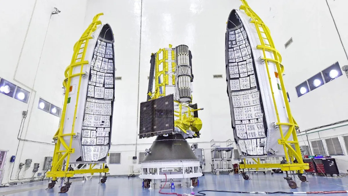 تم تغليف القمر الصناعي NISAR وتم إجراء الاستعدادات النهائية في غرفة نظافة في مركز ساتيش دوان للفضاء في الهند.