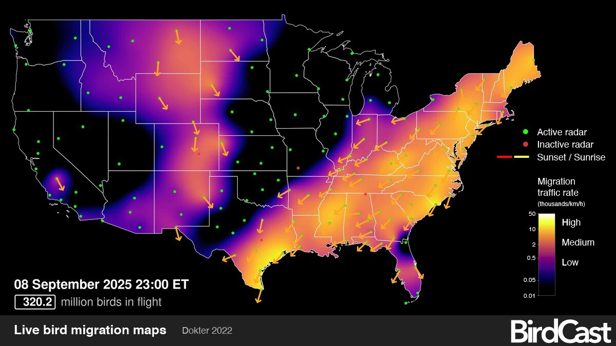 تتناول مئات الملايين من الطيور السماء كل ليلة ، ومرتبطة جنوبًا بحثًا عن الطقس الأكثر دفئًا – حيث يمكنك اكتشافها على رادار الطقس. إنها بيانات يمكن للباحثين استخدامها لتقدير عدد الطيور الموجودة في السماء وأين يذهبون.