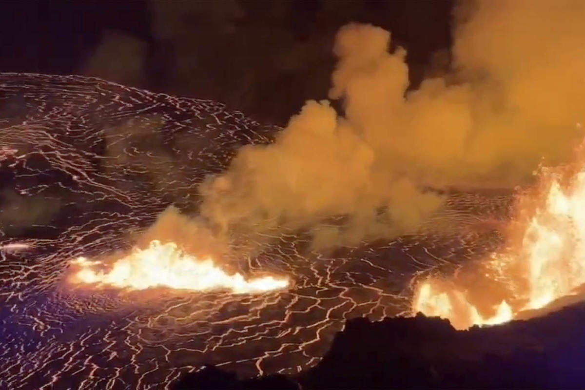 في هذه الصورة الجوية التي قدمتها هيئة المسح الجيولوجي الأمريكية، يحدث ثوران في قمة بركان كيلاويا في هاواي، الاثنين 23 ديسمبر 2024.