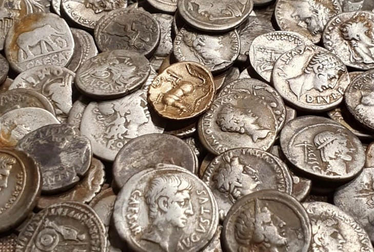 تمكن رجل بريطاني من العثور على كمية هائلة من العملات الرومانية القديمة الذهبية والفضية أثناء البحث باستخدام جهاز كشف المعادن، ليجد في جيبه المزيد من العملات الحديثة بعد بيع الكنز في مزاد مقابل 176 ألف دولار.