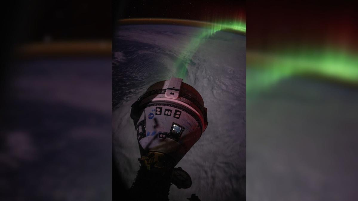 ستارلاينر حاليا في محطة الفضاء الدولية (محطة الفضاء الدولية)، وكان الطاقم يختبر دفاعات الكبسولة لأن المشاكل أدت إلى تأخير إجراءات الالتحام؛ المرة الأولى التي حدثت فيها المشكلة كانت في 6 يونيو، عندما كان رواد الفضاء على متن المركبة. وبينما كان ذلك يحدث، ناسا طاف رواد الفضاء في مكان قريب سبيس اكس والتقطت كبسولة Dragon، المرتبطة أيضًا بمحطة الفضاء الدولية، شفقًا أخضرًا يتلألأ خلف الجزء الخلفي من Starliner.
