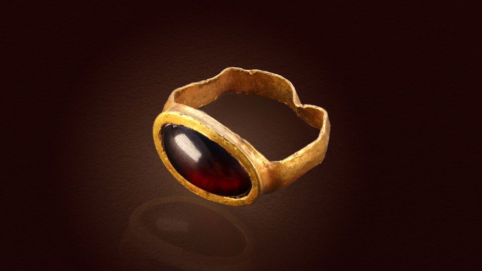تم تعيين الحلقة التي تم اكتشافها في الموقع منذ أقل من عام مع جوهرة حمراء ثمينة وتفتقر إلى علامات العمر.