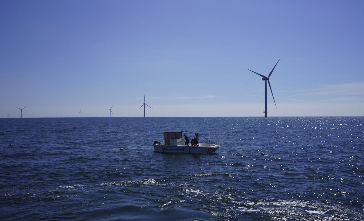 KRIEGERS FLAK OFFSHORE WIND FARM، الدنمارك (AP) – في قارب صغير يتمايل في الأمواج بين توربينات الرياح البحرية الشاهقة، يصل الباحثون في بحر البلطيق في أوروبا إلى المياه المتجمدة ويزيلون الخطوط الطويلة الممتدة بين الأبراج التي ينمو عليها بلح البحر والأعشاب البحرية .