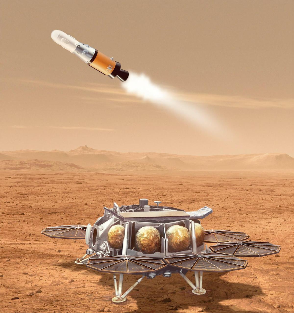 الخيار الأول هو استخدام نفس نظام الهبوط “الرافعة السماوية” الذي تم إثباته باستخدام مركبتي كيوريوسيتي ومثابرة المريخ التابعتين لناسا، ومركبة فضائية أصغر لجمع العينات، وصاروخ أصغر لدفع العينات إلى مدار حول الكوكب الأحمر ومركبة فضائية تابعة لوكالة الفضاء الأوروبية لالتقاطها و إعادتهم إلى الأرض.
